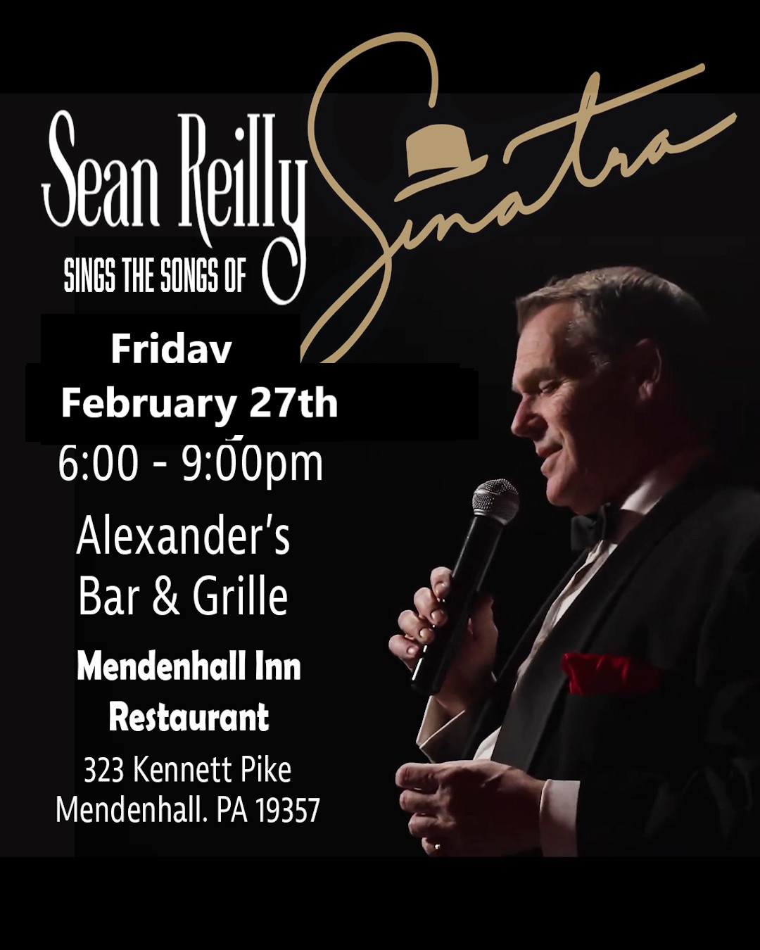 Feb 27 – FRI, Mendenhall Inn ‘Alexander’s Bar’ from 6-9PM 323 Kennett Pike Chadds Ford, PA 19317 –http://www.brandywinehotels.com/mendenhall-inn/ or CALL to RESERVE: 610-388-1181